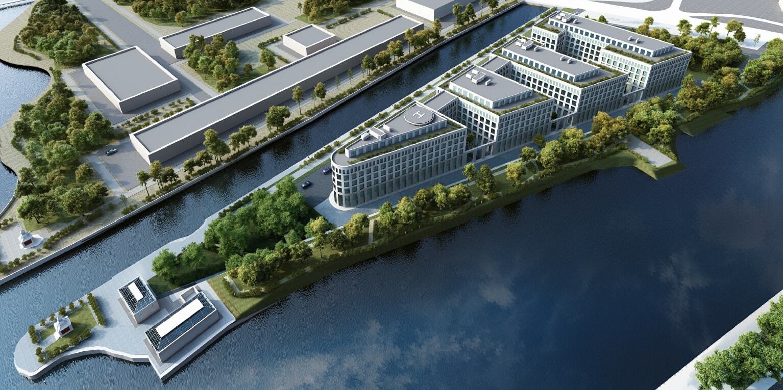 Участок размером 3,7 га примыкает к зданию восточного кроншпица МЧС, находящемуся на самом мысе. Здесь строится комплекс в виде треугольника, повторяющего очертания мыса. Помимо офисов, предусмотрена обширная сопутствующая инфраструктура: рестораны, кафе, магазины, яхт-клуб, подземный паркинг и пр.